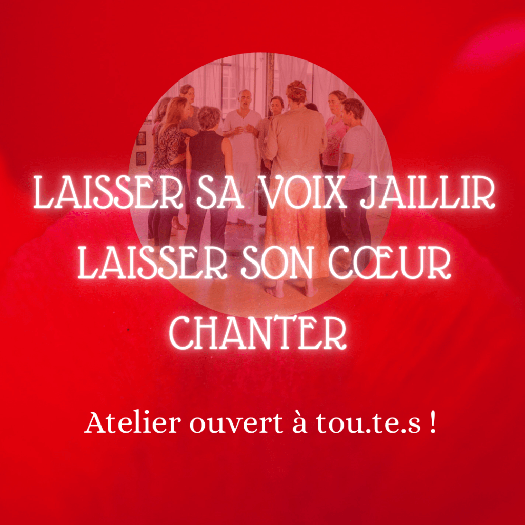 Nous savons tou.te.s chanter. « Si tu sais marcher, tu sais danser; et si tu sais parler, tu sais chanter » dit un proverbe africain. J’invite simplement à oser laisser le chant s’exprimer à travers soi.