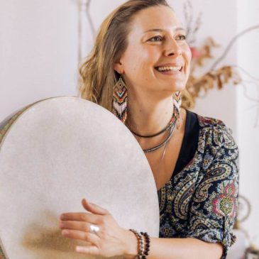 Peu à peu, la vie m’ouvre à l’accompagnement qui m’est le plus cher : la naissance & la mort. J’accompagne donc, à travers voix et avec mon tambour, les deux grands passages que sont l’accouchement et la fin de vie. Je me ressens profondément comme une chanteuse-passeuse et désire déployer au quotidien l’accompagnement des femmes qui accouchent et des êtres en fin de vie.